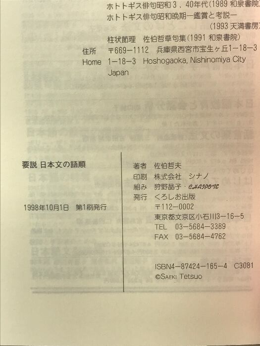 タイトル:要説日本文の語順 くろしお出版 佐伯 哲夫