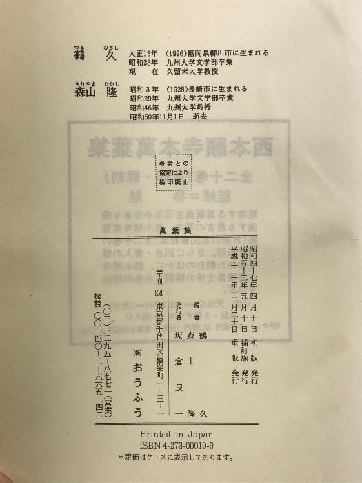 萬葉集 おうふう 鶴 久