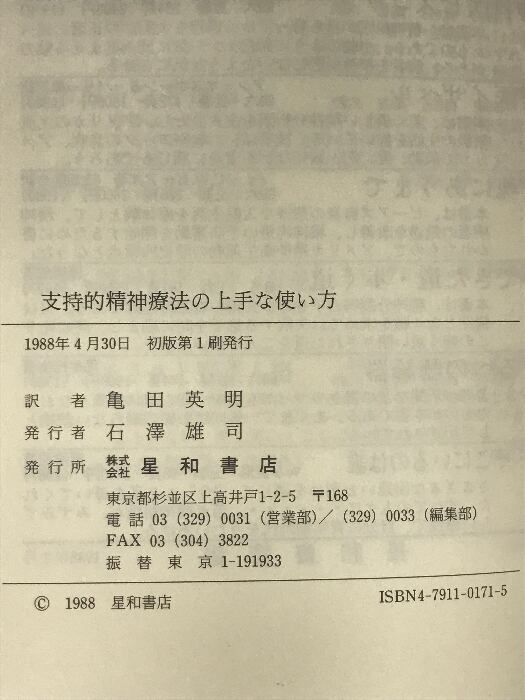 タイトル:支持的精神療法の上手な使い方 星和書店 ディビッド・S. ワーマン