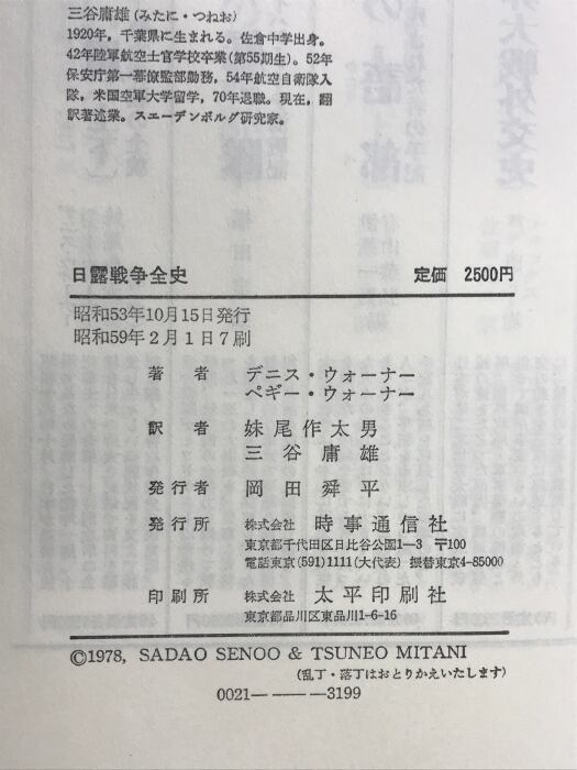日露戦争全史 時事通信社 昭和59年 デニス・ウォーナー ペギー・ウォーナー 妹尾作太男 他共訳