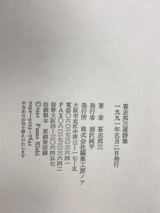 タイトル:喜志邦三選詩集 1930-1940 編集工房ノア 1991年