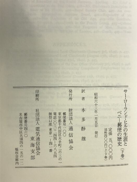 タイトル:サー・ローランド・ヒルの生涯とペニー郵便の歴史 (上・下巻)通信協会 本多静雄訳 昭和63年