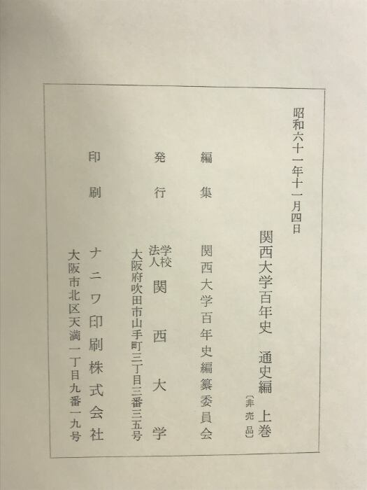 タイトル:関西大学百年史 通史編(上)昭和61年 発行:関西大学