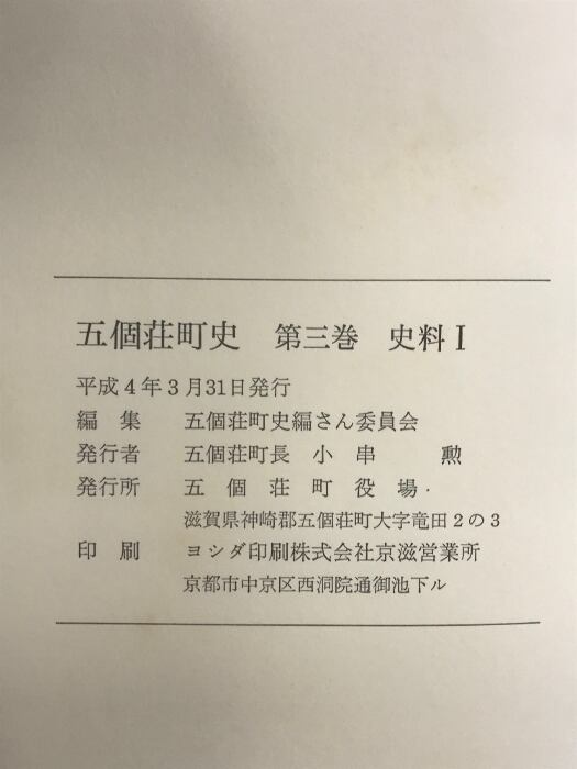 五個荘町史 (滋賀県)第3巻史料1 平成4年 発行:五個荘町役場