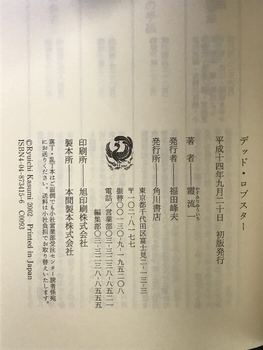 タイトル:デッド・ロブスター KADOKAWA 霞 流一