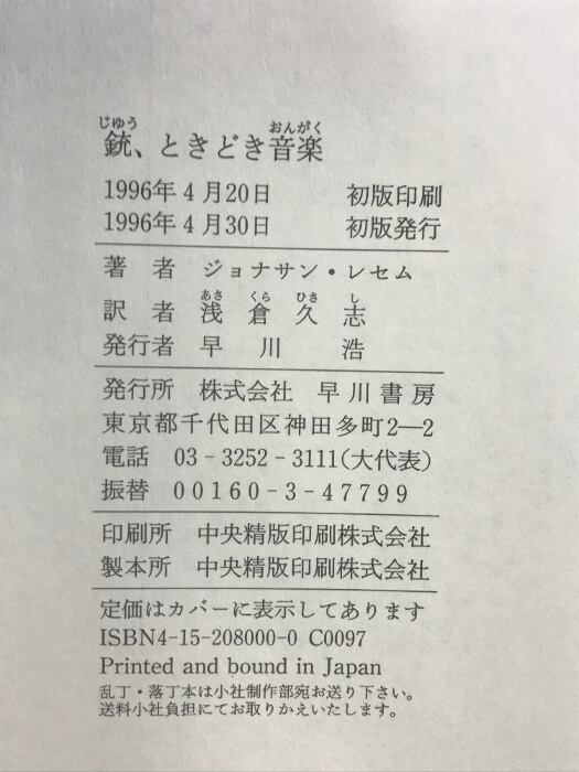 銃、ときどき音楽 早川書房 ジョナサン レセム