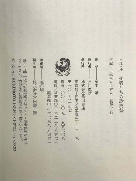 タイトル:六道ヶ辻死者たちの謝肉祭 KADOKAWA 栗本 薫