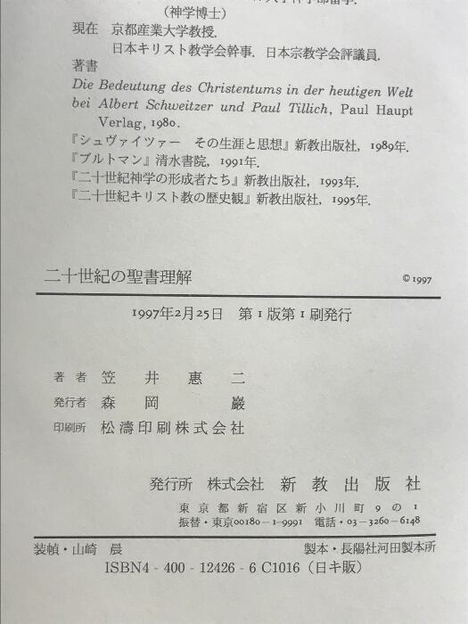 タイトル:二十世紀の聖書理解 新教出版社 笠井 恵二