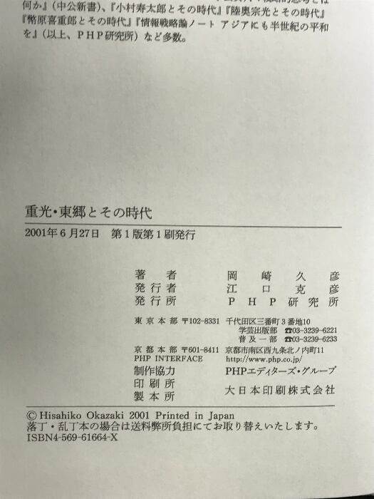 タイトル:重光・東郷とその時代 PHP研究所 岡崎 久彦