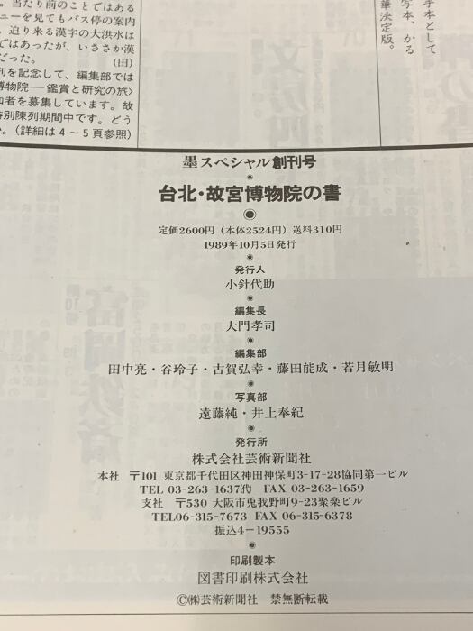 創刊号 季刊 墨 スペシャル 01 台北・故宮博物院の書 芸術新聞社