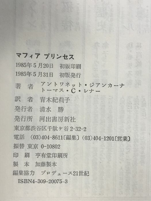 タイトル:マフィアプリンセス 河出書房新社 アントワネット ジアンカーナ