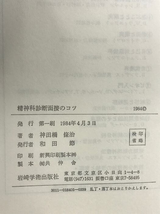 タイトル:精神科診断面接のコツ 岩崎学術出版社 神田橋 条治