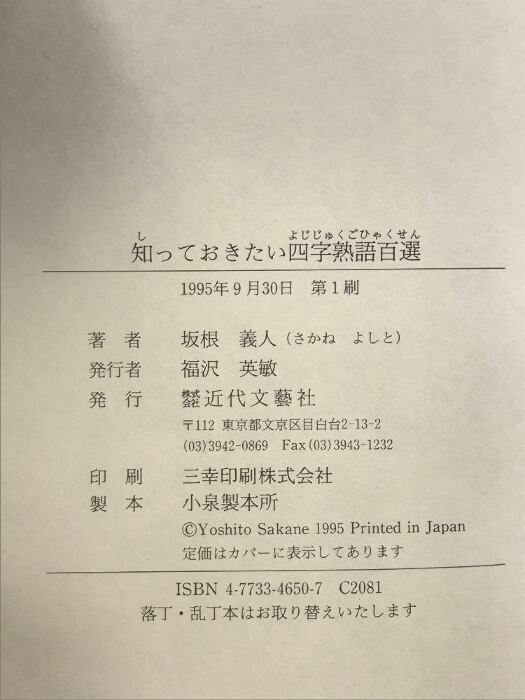 知っておきたい四字熟語百選 近代文藝社 坂根 義人