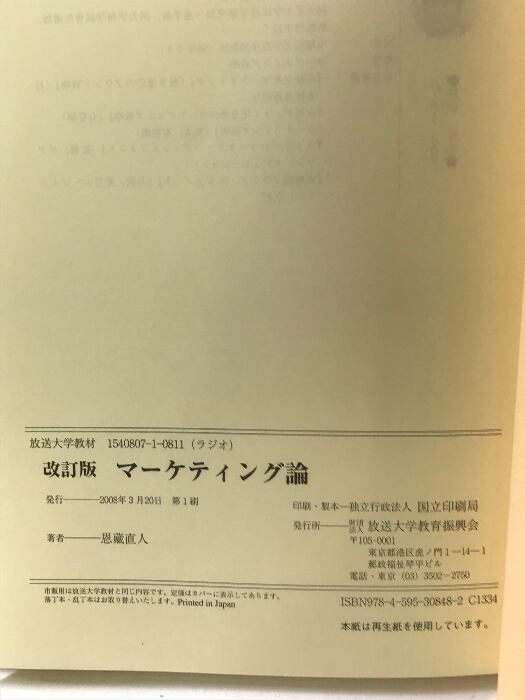 タイトル:マーケティング論 改訂版 放送大学教育振興会 恩蔵 直人