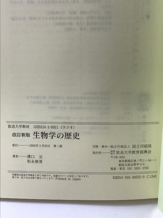タイトル:生物学の歴史 改訂新版 放送大学教育振興会