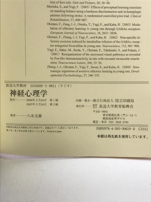 タイトル:神経心理学 放送大学教育振興会 八木 文雄