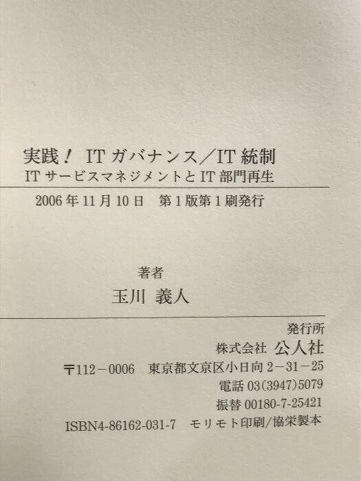 タイトル:実践! ITガバナンス/IT統制: ITサ-ビスマネジメントとIT部門再生 公人社 玉川 義人