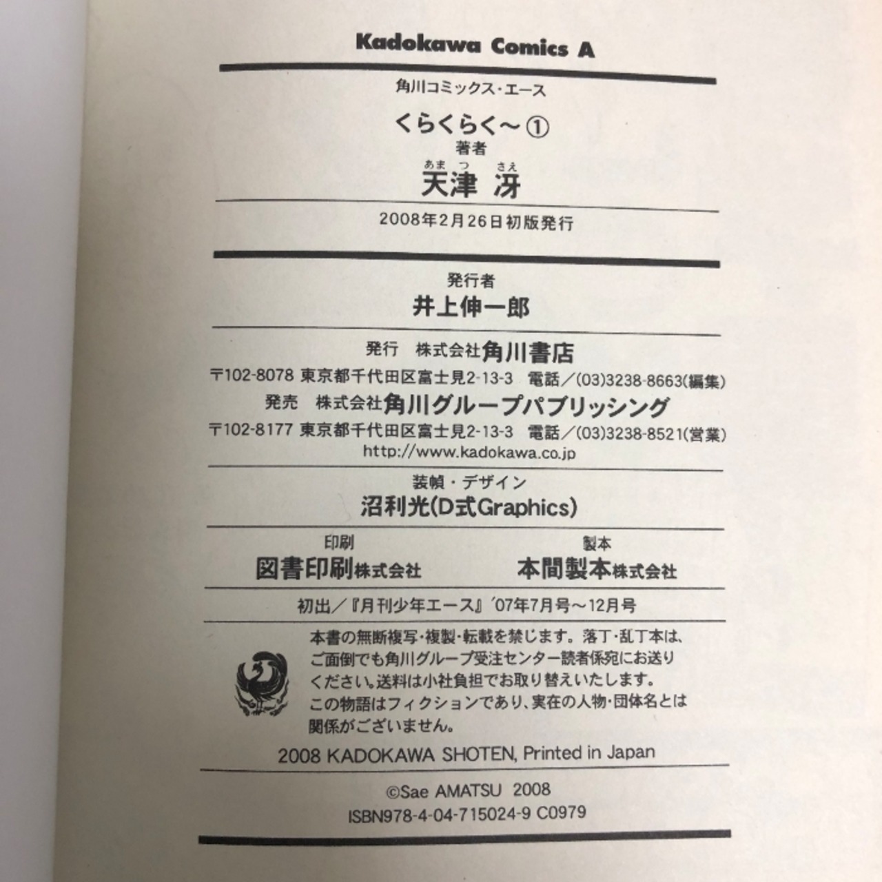 タイトル:くらくらく~ コミック 全3巻セット 初版 角川コミックス・エース 角川書店 天津 冴