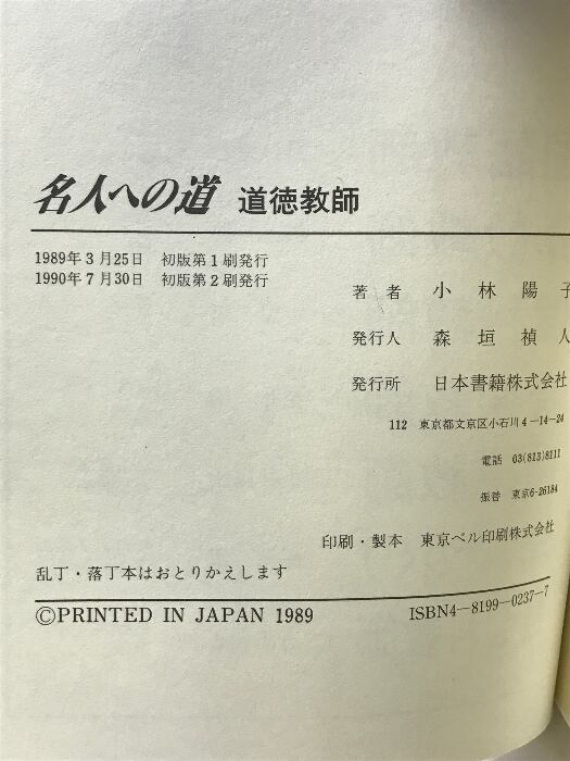 タイトル:名人への道道徳教師 日本書籍新社 小林 陽子