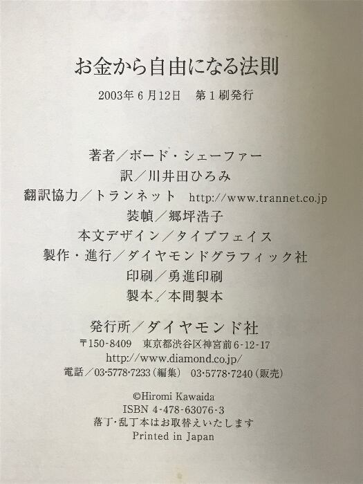 タイトル:お金から自由になる法則 ダイヤモンド社 ボード・シェーファー