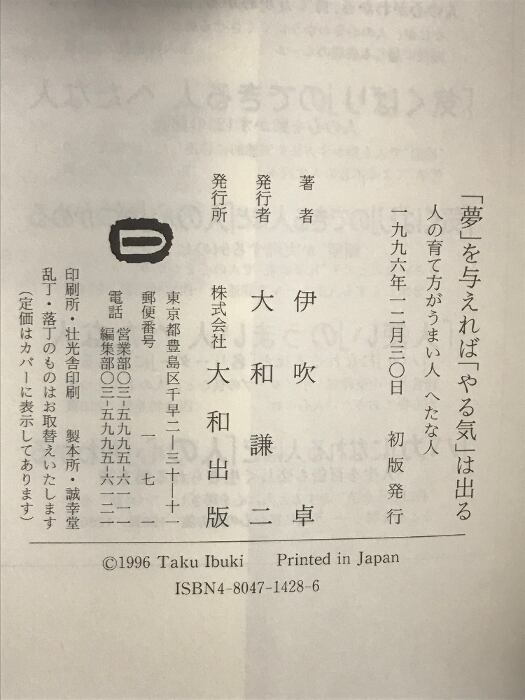 タイトル:夢を与えればやる気は出る: 人の育て方がうまい人へたな人 大和出版 伊吹 卓