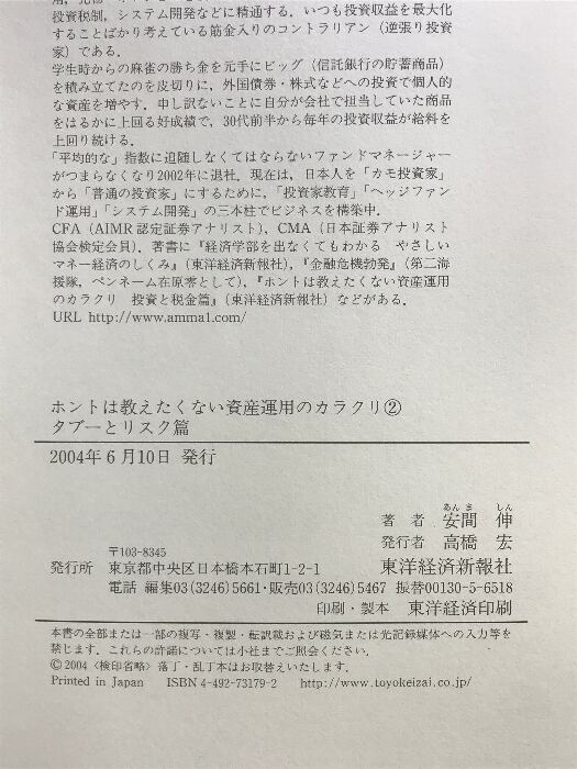 タイトル:ホントは教えたくない資産運用のカラクリ2 タブーとリスク篇 東洋経済新報社 安間 伸