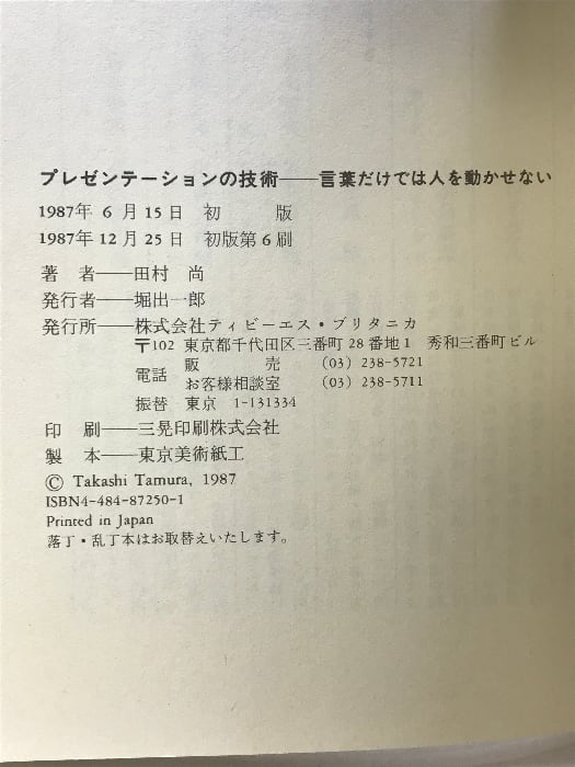 タイトル:プレゼンテーションの技術: 言葉だけでは人を動かせない シーシーシーメディアハウス 田村 尚