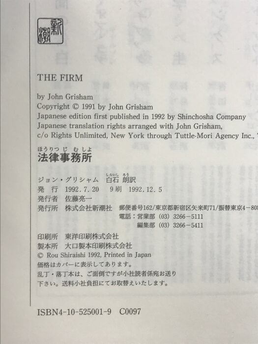 タイトル:法律事務所 新潮社 ジョン グリシャム