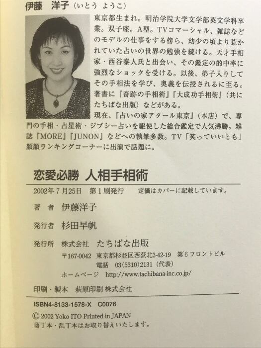 タイトル:恋愛必勝人相手相術 TTJ・たちばな出版 伊藤 洋子