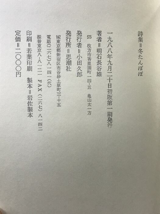 タイトル:冬たんぽぽ 思潮社 明石 長谷雄