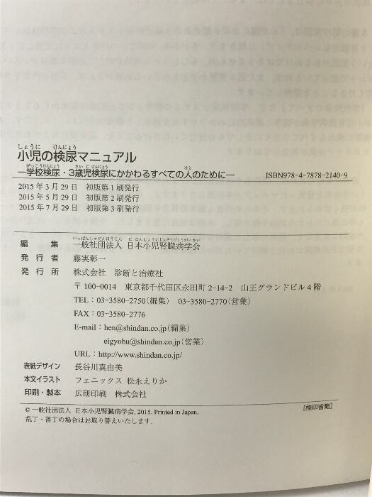 タイトル:小児の検尿マニュアル 学校検尿・3歳児検尿にかかわるすべての人のために 診断と治療社 日本小児腎臓病学会