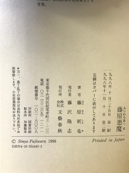 タイトル:藤原悪魔 文藝春秋 藤原 新也