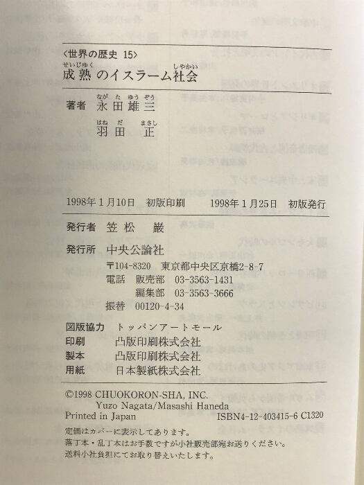 世界の歴史 (15) 成熟のイスラーム社会 中央公論新社 永田 雄三