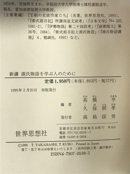 タイトル:新講源氏物語を学ぶ人のために 世界思想社教学社 高橋 亨