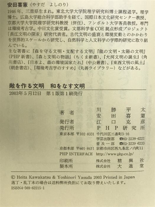 タイトル:敵を作る文明 和をなす文明 PHP研究所 川勝 平太