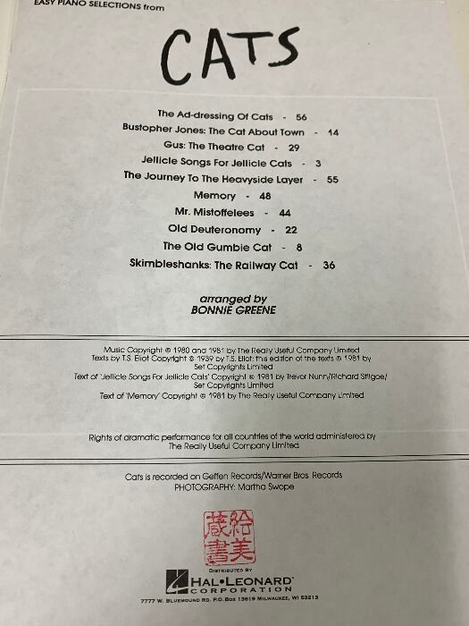 タイトル:洋書 楽譜 CATS Easy Piano Selections from Cats (Easy Piano Series) Hal Leonard Corp Lloyd Andrew Webber