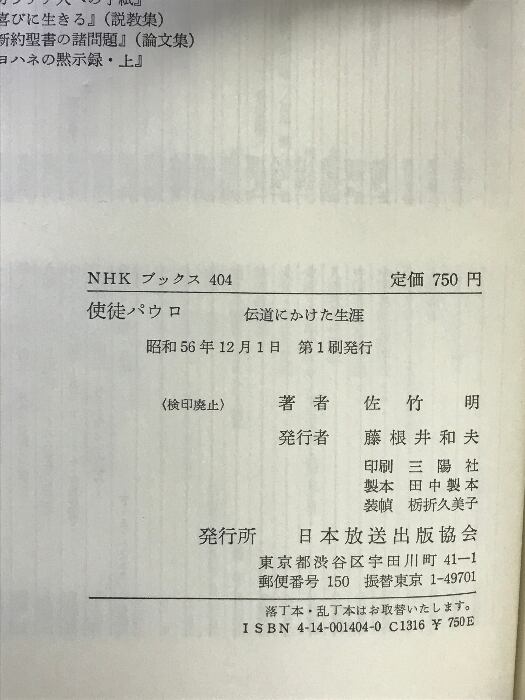 タイトル:使徒パウロ: 伝道にかけた生涯 NHK出版 佐竹 明
