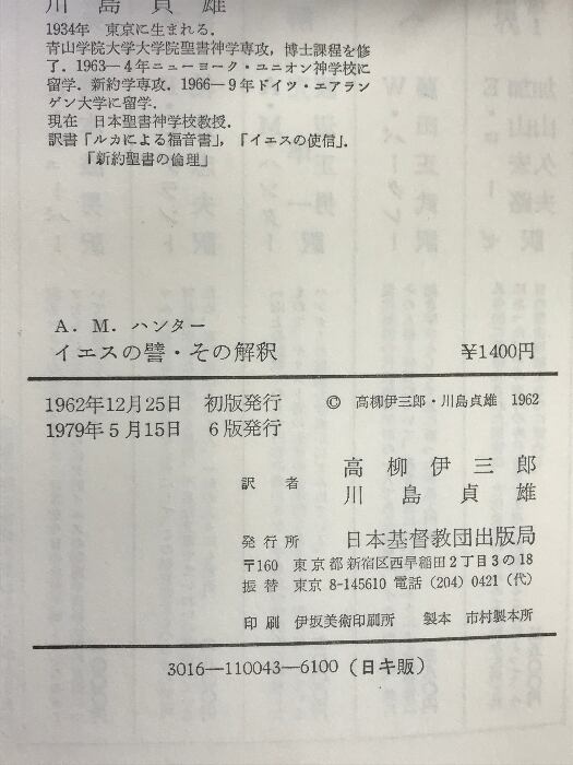 タイトル:イエスの譬・その解釈 日本基督教団出版局 AMハンター 高柳伊三郎 他訳