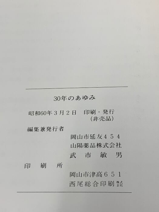 タイトル:30年のあゆみ 山陽薬品株式会社