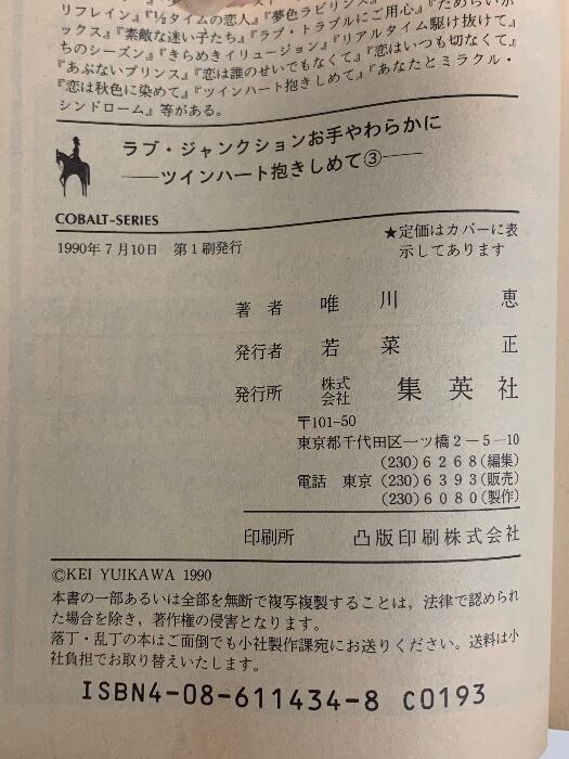 タイトル:ラブ・ジャンクションお手やわらかに: ツインハート抱きしめて3 (集英社文庫 コバルトシリーズ 169-U) 集英社 唯川 恵