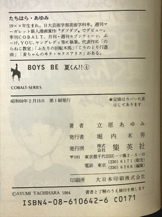 BOYS BE夏くん 4 (集英社文庫 コバルトシリーズ 78-L) 集英社 立原 あゆみ