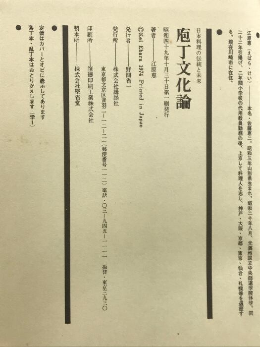 タイトル:庖丁文化論―日本料理の伝統と未来 講談社 江原恵