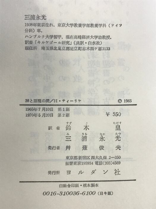 神と悪魔の間 荒野の誘惑 ヨルダン社 ヘルムート・ティーリケ 鈴木皇/三浦永光