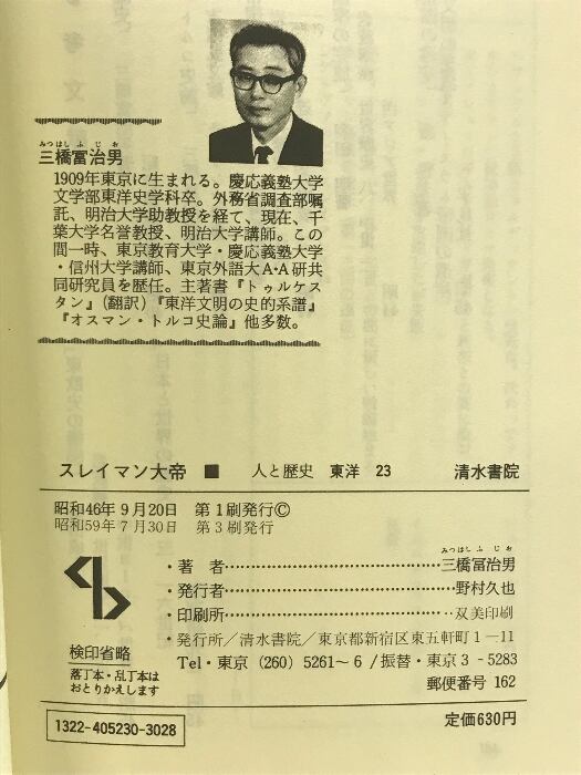 タイトル:スレイマン大帝―オスマン帝国の栄光 (センチュリーブックス―人と歴史シリーズ〈東洋 23〉清水書院 三橋冨治男