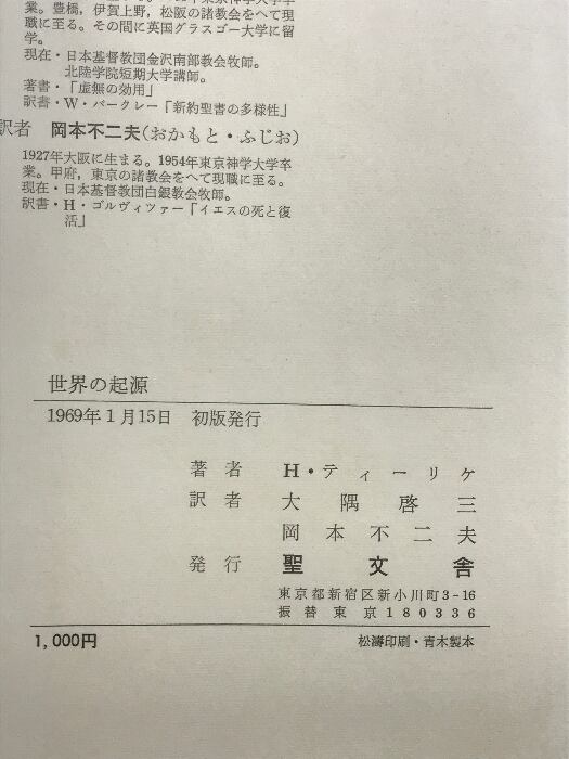 タイトル:世界の起源 創世記講解説教 聖文舎 H・ティーリケ 大隅敬三/岡本不二夫