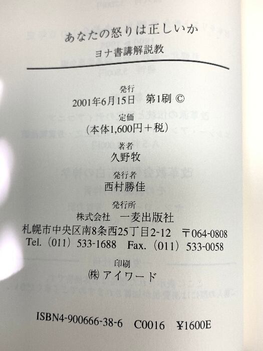 タイトル:あなたの怒りは正しいか 一麦出版社 - 久野牧