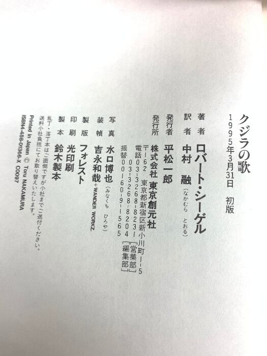 タイトル:クジラの歌 東京創元社 ロバート シーゲル
