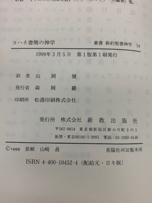 タイトル:叢書新約聖書神学 14 ヨハネ書簡の神学 新教出版社 山内一郎