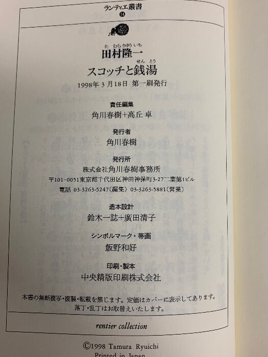 スコッチと銭湯 (ランティエ叢書 14) 角川春樹事務所 田村 隆一