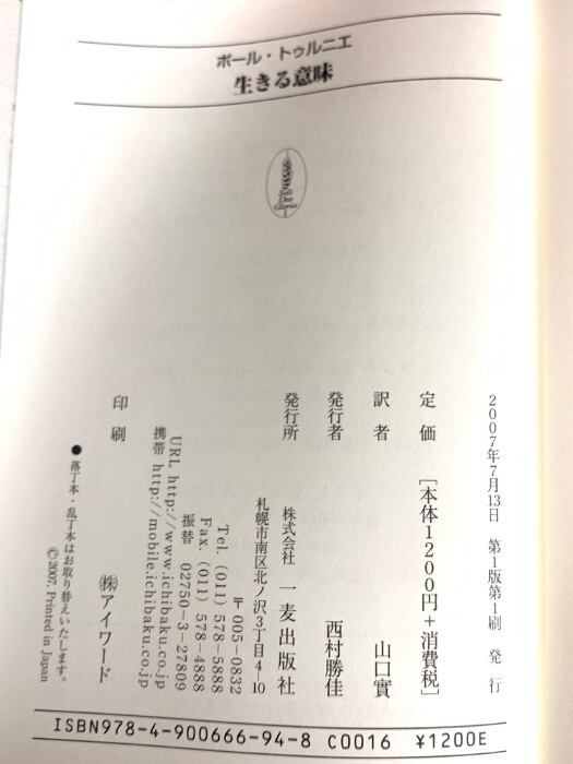 タイトル:生きる意味: 来日講演集 一麦出版社 ポール トゥルニエ
